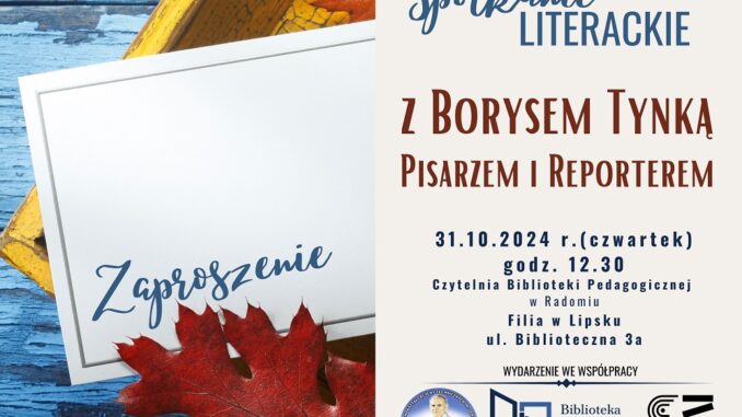 Rozrywka Spotkanie autorskie z Borysem Tynką 28 października 2024 rafales 0 Serdecznie zapraszamy na spotkanie autorskie z […]