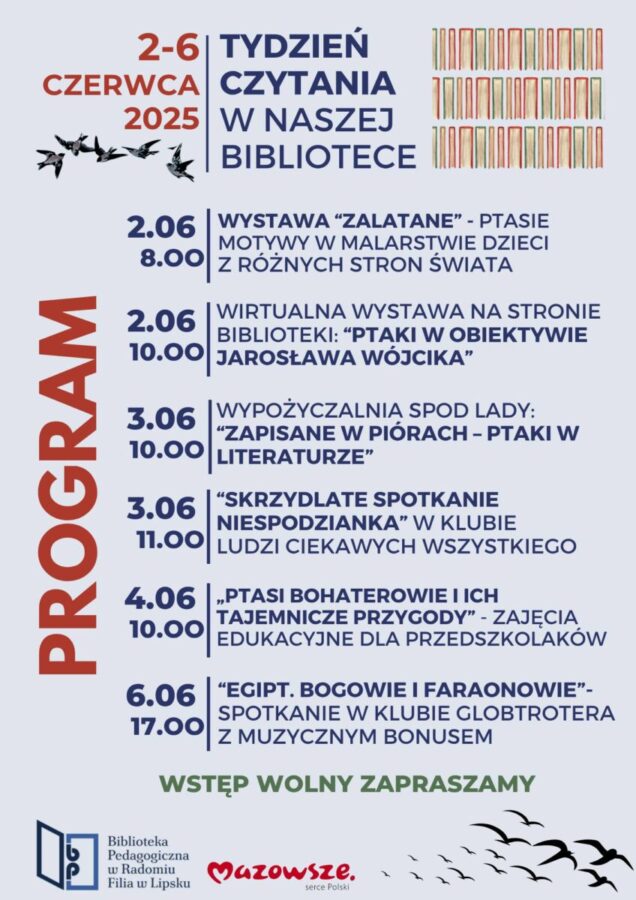 Od 2 do 6 czerwca w Bibliotece Pedagogicznej w Radomiu Filia w Lipsku trwa Tydzień Czytania.