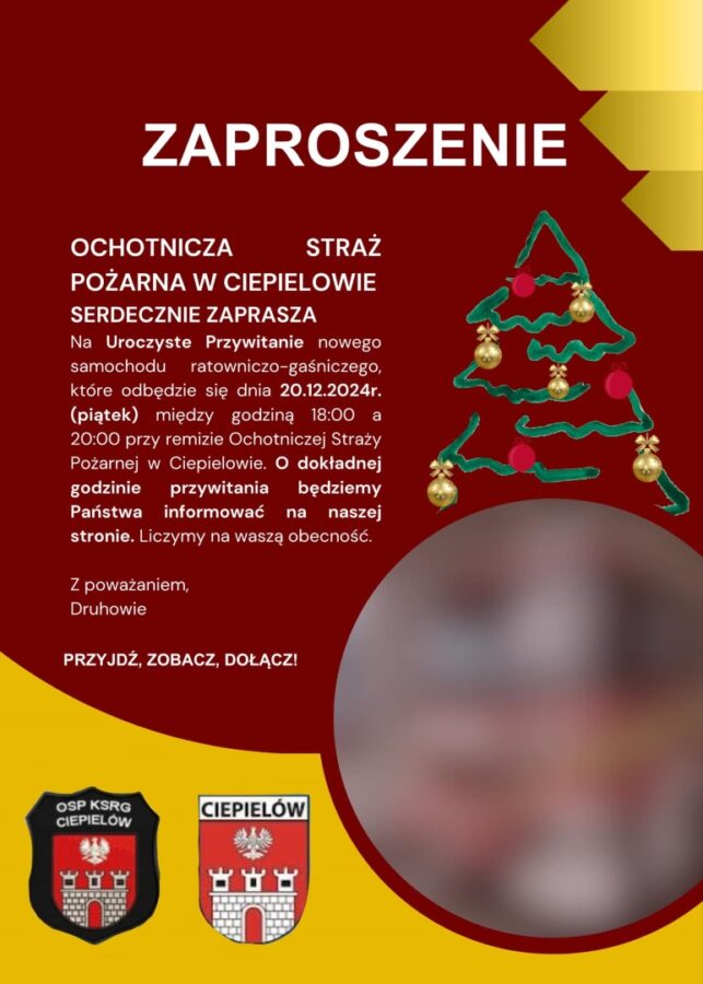 OSP KSRG Ciepielów zaprasza wszystkich mieszkańców oraz sympatyków straży pożarnej na uroczyste przywitanie nowego samochodu.