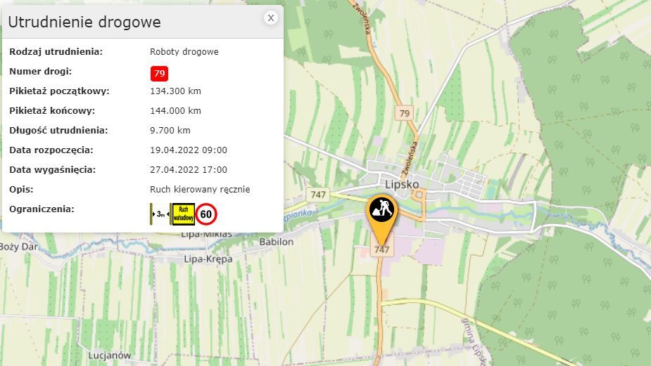 Droga: nr 79 na odcinku Zwoleń – Kostusin odcinek Lipsko – Kostusin.