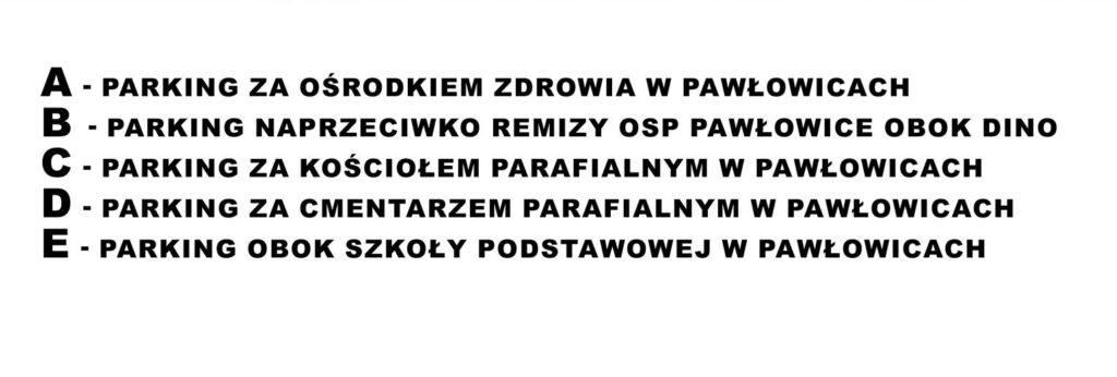 Do naszego plakatu dołączamy mapkę z rozkładem parkingów, aby ułatwić Wam parkowanie i usprawnić komunikację w dniu wydarzenia.