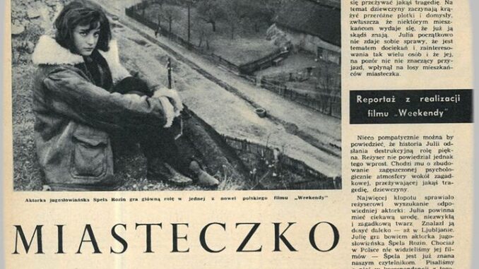 „Weekendy” to nowela filmowa, w reżyserii Jana Rutkiewicza nakręcona w Solcu nad Wisłą. W tajemniczych uliczkach i na pięknych nadbrzeżach pojawia się młoda, piękna dziewczyna, pozornie bez celu. Jej przybycie jednak wywołuje w społeczności mieściny plotkarski ferment. Julia skrywa w sobie głęboko ukrytą tragedię, ale dopiero za radą starego przewoźnika podejmuje się powrotu do nieuleczalnie chorego mężczyzny, którego kocha.