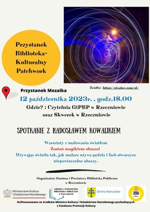 Warsztaty z malowania światłem 12 października 2023 rafales Rozrywka 0 Czas czytania: < 1 minutęGminna i Powiatowa Biblioteka w Rzeczniowie zaprasza na warsztaty malowania światłem. 12 października, godzina 18:00. bibliotekaRzeczniówwarsztatyWspieraj MojeLipsko – pomóż nam się rozwijać