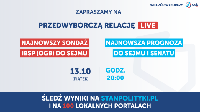 Wieczór wyborczy OGB Pro, który rozpocznie się o 20:30 w niedziele, będzie można śledzić na żywo w mediach społecznościowych (YouTube, Facebook, TikTok oraz Twitch), a wszystkie dane będą dostępne na stronie StanPolityki.pl. Relacja z wieczoru wyborczego będzie oparta o pierwsze w Polsce narzędzie typu “Magic Wall” do prezentowania wyników wyborów. Do pobrania będzie także specjalna aplikacja “OGB Pro – Story Wall” dostępna na urządzenia mobilne z systemem iOS oraz Android.