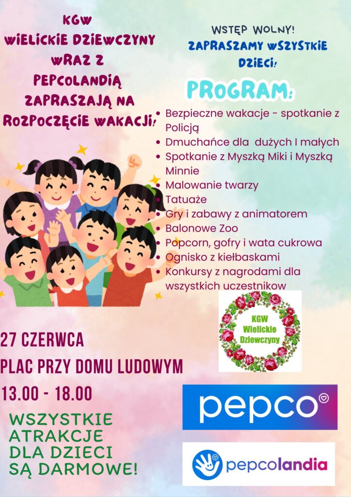 Wielickie Dziewczyny zapraszają na rozpoczęcie wakacji 10 czerwca 2025 rafales Rozrywka 0 Czas czytania: < 1 minutęKG?W „Wielickie Dziewczyny” z Wielgiego (gmina Ciepielów) zapraszają małe i duże dzieci na rozpoczęcie wakacji! Już 27 czerwca moc atrakcji! Szczegóły na plakacie: WielgieWspieraj MojeLipsko – pomóż nam się rozwijać