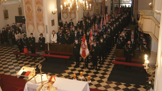 We Mszy Świętej uczestniczyły delegacje z powiatu lipskiego wraz ze sztandarami z Komendy Powiatowej Państwowej Straży Pożarnej w Lipsku, Zarządu Oddziału Powiatowego ZOSP RP w Lipsku, delegacje Ochotniczych Straży Pożarnych z OSP Chotcza, OSP Kadłubek, OSP Kochanówka, OSP Łaziska, OSP Pawliczka, przedstawiciele OSP Sadkowice, OSP Lipsko i OSP Osówka.