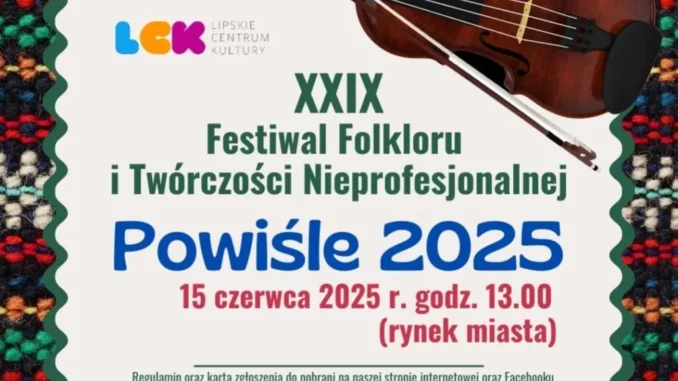 Lipskie Centrum Kultury zaprasza do udziału 29 edycji Festiwal Folkloru i Twórczości Nieprofesjonalnej POWIŚLE 2025.