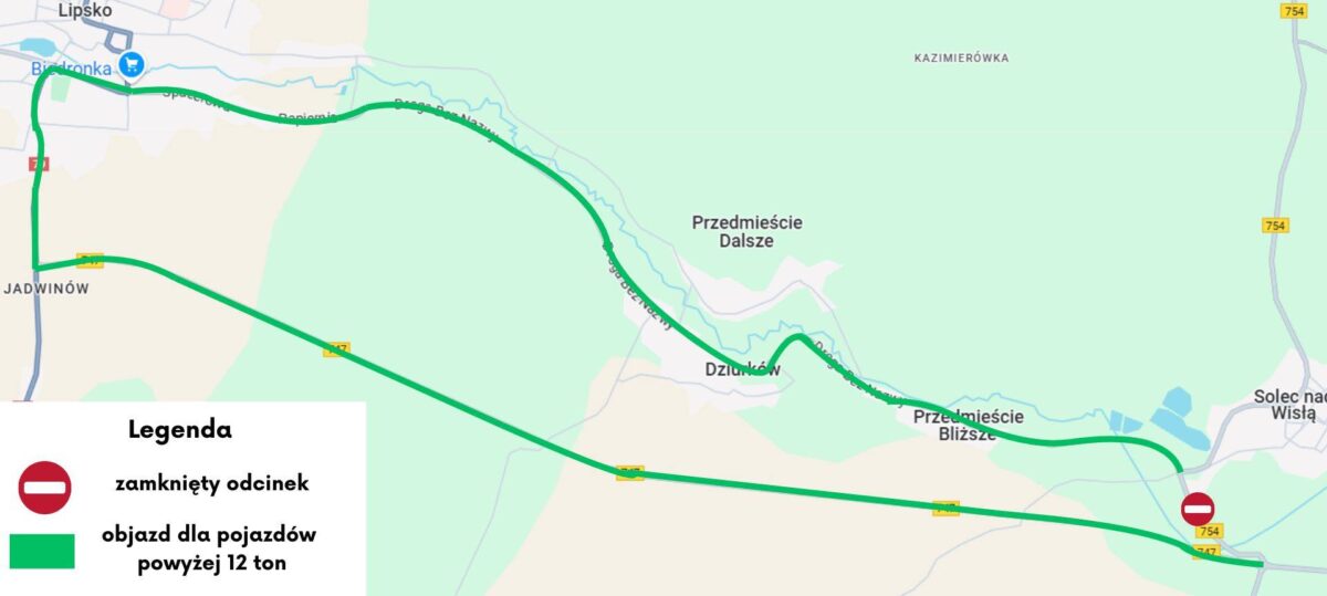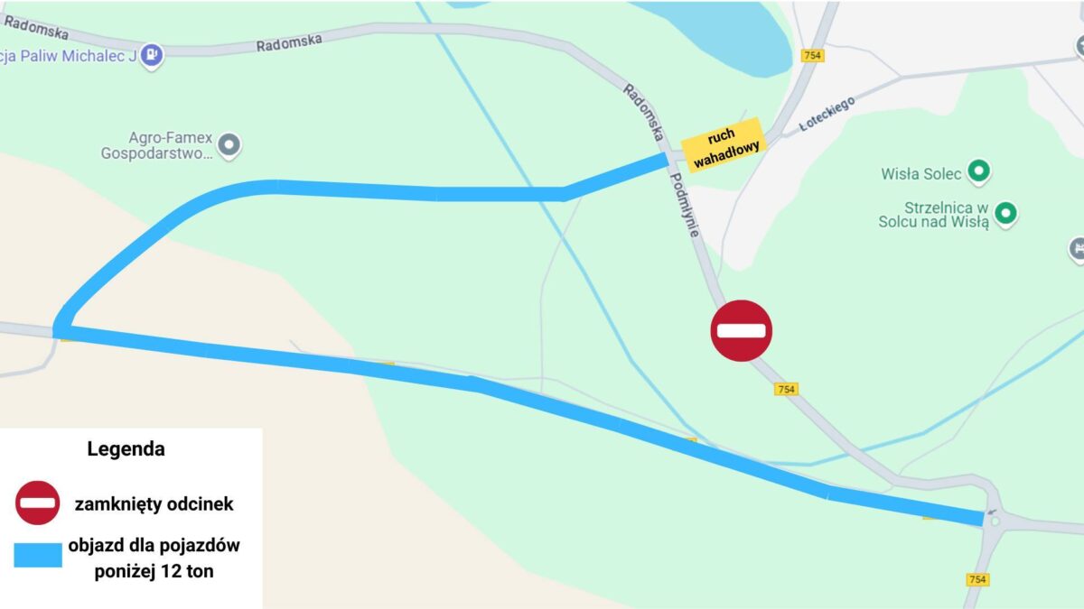 Zamykają 754 w Solcu. Dwa różne objazdy