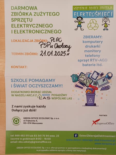 Zbiórka elektrośmieci w Chotczy 15 stycznia 2025 rafales Komunikaty 0 Czas czytania: < 1 minutę Darmowa zbiórka elektrośmieci. Zaprasza Publiczna Szkoła Podstawowa im. Bohaterów Walk Partyzanckich w Chotczy. 21 stycznia 20225 r. elektrośmiecisegregacjaWspieraj MojeLipsko – pomóż nam się rozwijać