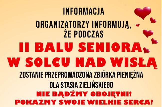 Podczas „II Balu Seniora w Solcu nad Wisłą, który odbędzie się 15 lutego w „Zaciuszu u Zosi (Kłudzie)” będzie można wesprzeć Stasia Zielińskiego i wrzucić datek do puszki.