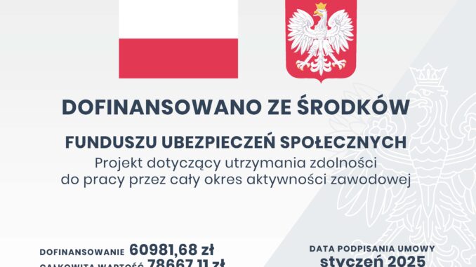 Dofinansowanie ze środków: Funduszu Ubezpieczeń Społecznych.
