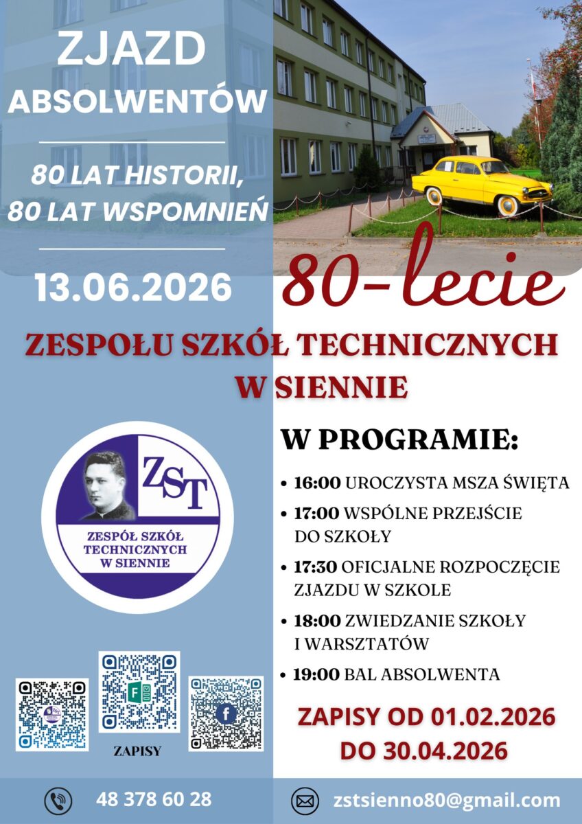 ZESPÓL SZKÓL TECHNICZNYCH W SIENNIE ZAPRASZA ABSOLWENTÓW.