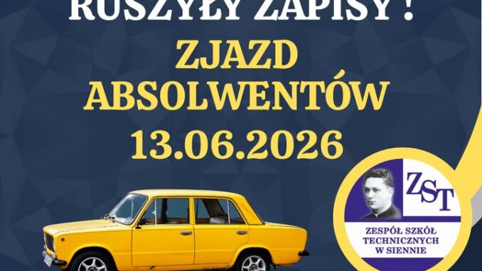 Z radością informujemy, że rozpoczęły się zapisy na Zjazd Absolwentów ZST w Siennie. To doskonała okazja, by spotkać się po latach, powspominać szkolne czasy i odnowić dawne znajomości.