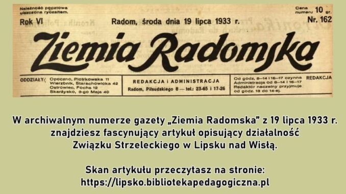 W archiwalnym numerze gazety „Ziemia Radomska” z 19 lipca 1933 r. znajdziesz fascynujący artykuł opisujący działalność Związku Strzeleckiego w Lipsku nad Wisłą. To żywe świadectwo pasji i zaangażowania miejscowej młodzieży 👩‍🎓👨‍🎓 oraz nauczycieli w życie społeczne i patriotyczne 🇵🇱.